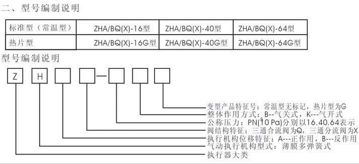 ZHA/BQ(X)轻小型气动薄膜三通合(分)流调节阀(简称三通阀)是工业过程控制中的执行单元,它可以替代二台同时使用的调节阀,起分流或合流作用。该产品用圆筒薄壁窗口形阀芯作为导向,配用多弹簧执行机构,具有结构简单、重量轻、调节稳定可靠、占据空间小等特点,被广泛用于热交换器的温度控制,也可用于石油、化工、电站、冶金等行业的自动化过程控制。